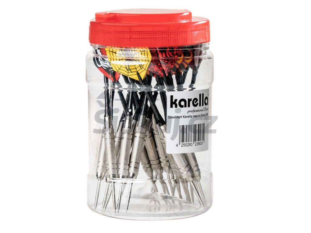 Sada 24 ocelových šipek Karella 19 g je perfektní volbou pro rekreační hráče, hospodské turnaje i domácí trénink. Nabízí výborný poměr ceny a kvality – vše pečlivě uložené v praktické PVC dóze, díky které budete mít šipky vždy bezpečně po ruce.