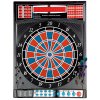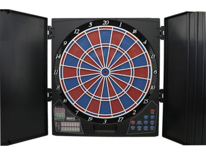 Nástěnný elektronický šipkový terč v uzavíratelném kabinetu až pro 16 hráčů.