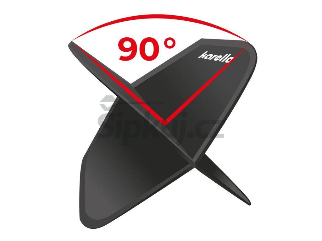 Předtvarovaná konstrukce s přesným úhlem 90° zajišťuje rovnoměrnou aerodynamiku a konzistentní let – což znamená vyšší přesnost hodů a lepší konzistenci zásahů.