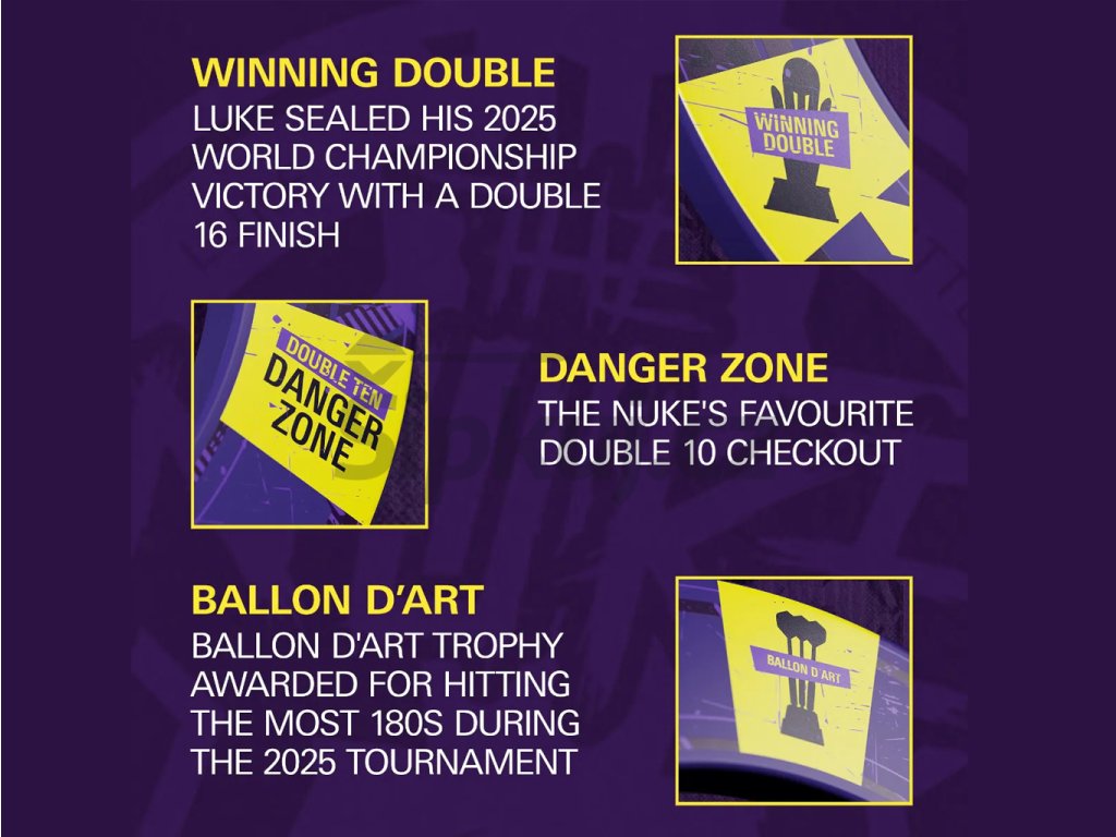 Získej jedinečný balíček, který oslavuje mimořádný triumf nejmladšího mistra světa v historii šipek – Luka „The Nuke“ Littlera! Tato sada není jen herním vybavením, ale poctou legendárnímu vítězství na mistrovství světa PDC 2025. Navržena pro hráče, kteří to myslí vážně.