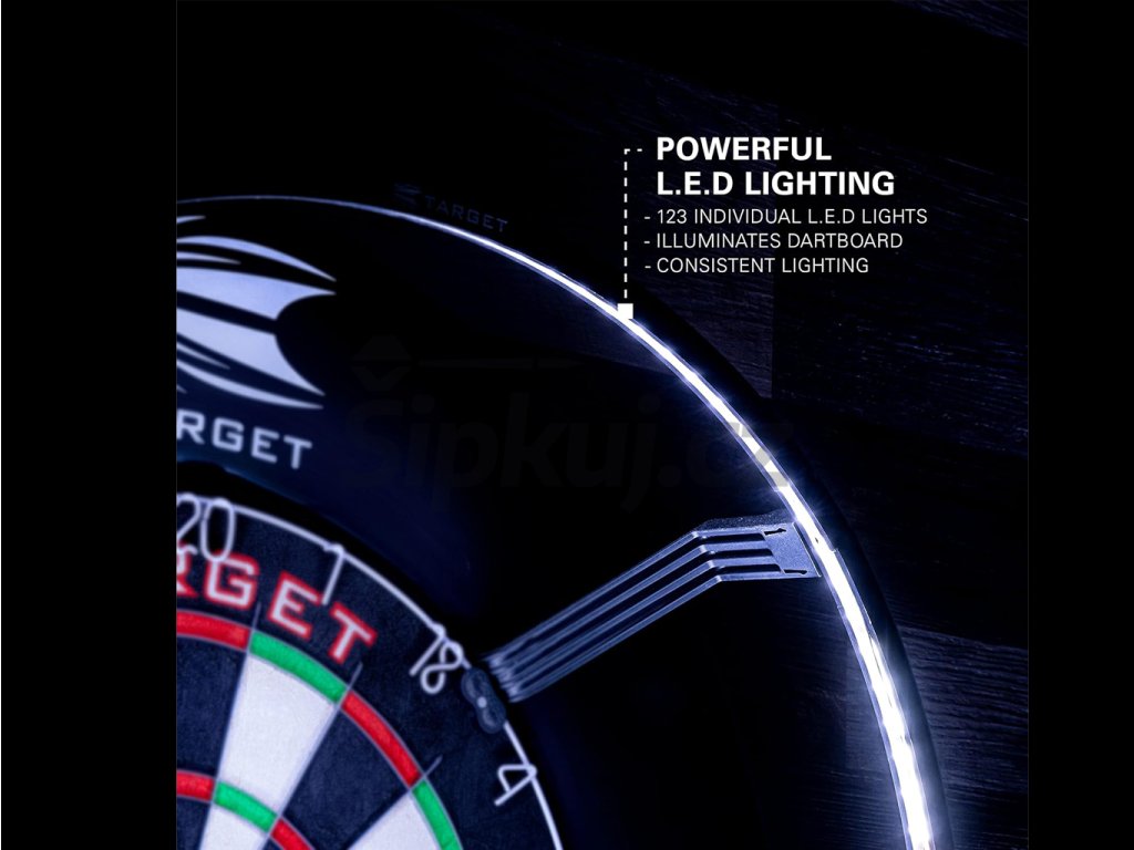 Target Corona Vision Light osvětluje terč rovnoměrně ze všech stran díky 123 výkonným LED diodám, které pokrývají celý kruh kolem terče. Výsledkem je nulové stínění, ať už hodíš odkudkoli. Šipky už nikdy nezakryjí důležitá čísla – každý milimetr terče bude jasně viditelný.