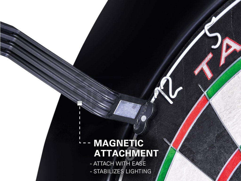 Osvětlení je vyrobeno z odolného plastu, navrženého pro časté používání – ať už hraješ doma každý večer nebo v klubu s přáteli. Vhodné pro všechny klasické sisalové terče (cca 44–45 cm).
