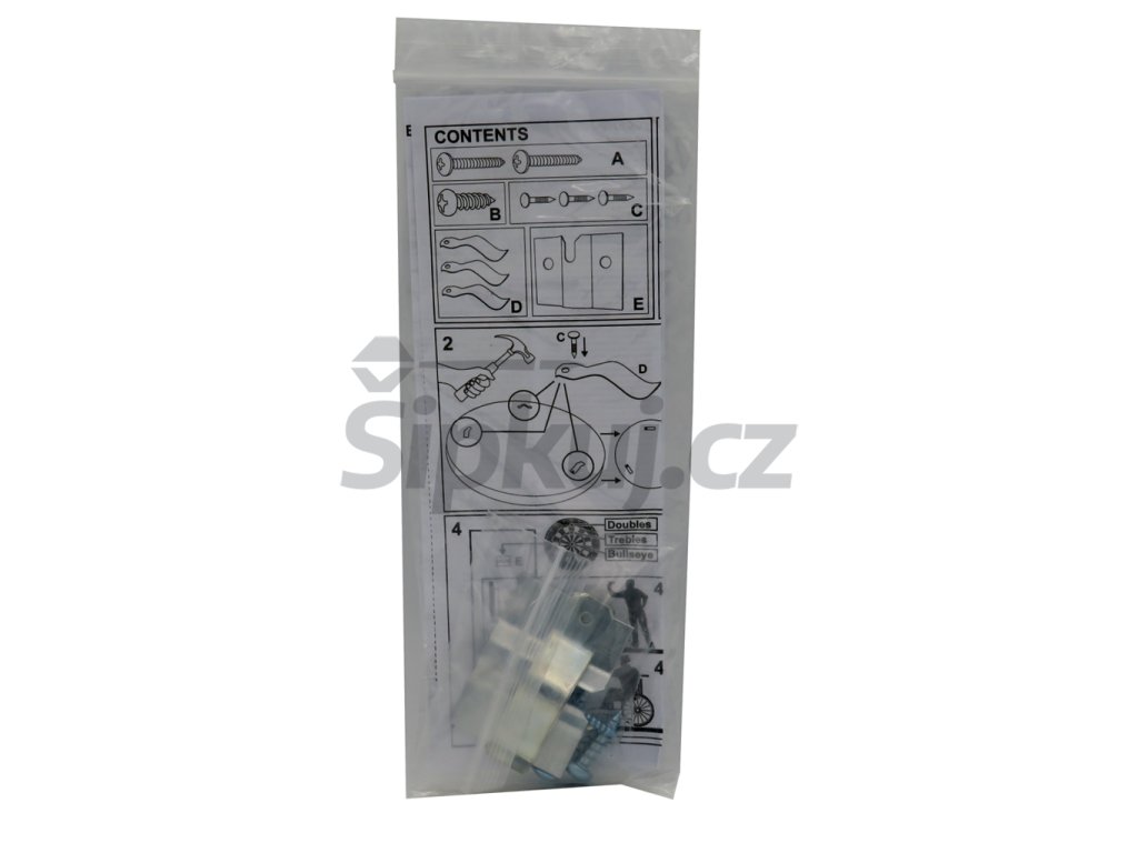 Centrální uchycení – třetí šroub se připevní do středu zadní části terče a bezpečně jej zavěsí.